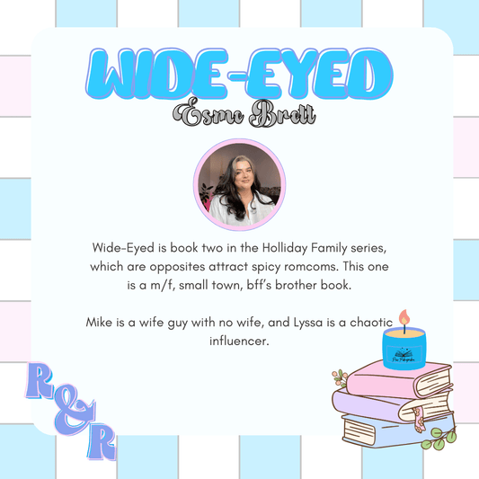 Wide-Eyed is book two in the Holliday Family series, which are opposites attract spicy romcoms. This one is a m/f, small town, bff’s brother book.Mike is a wife guy with no wife, and Lyssa is a chaotic influencer.The vibes are the Simple Life mixed with Schitt's Creek, mixed with ample Kiwi charm.Esme Brett, writer of spicy romcoms that are horny, heartfelt and hilarious).The Kiwi Hobby Farmer and the American influencer he can’t stop watching.Perfect for fans of Annika Martin and Tessa Bailey.When New York fashion influencer Lyssa Luxe goes viral for all the wrong reasons, the last person she expects to offer an escape is her best friend’s brother from New Zealand.But needs must, so Lyssa hops on a plane with plans to pivot to smalltown content to repair her damaged rep. And if she can leverage her ruggedly handsome Kiwi host to disprove haters’ claims she has the allure of a wet noodle, that's even better.Hobby farmer and beefcake Mike Holliday's mouth has always got him in trouble.He didn’t think Lyssa would actually leave New York, and now she's stepped out from behind his screen, it’s a full time job keeping her at arm’s length. Mike needs to show his town he’s a mature and responsible entrepreneur, and that means keeping both his mouth and his notoriously revolving bedroom door shut tight.But when Lyssa asks Mike for help (ahem) ‘finding herself’, his Kiwi hospitality and Lyssa-specific lust will be put to the test. It'll be okay, right? As long as no one—especially not his sister or his small town neighbours—find out.Tropes:Pure of heart, dumb of ass MMC, Hot mess, chaos queen FMC, Small town NZ, Passenger Princess, ADHD rep, Found family, Toys as teammates, Breath play, Bareback (& it’s messy)What’s Inside: