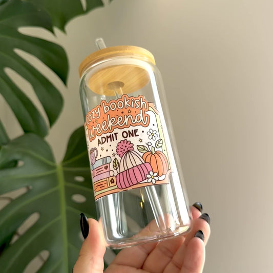 Cosy Bookish Weekend Admit One ~ Glass Can Mug ~ 16oz